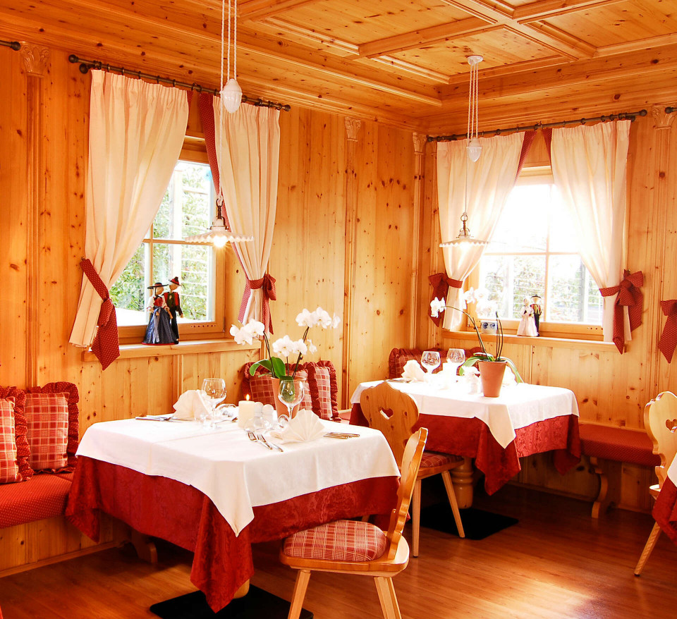 Genießen Sie Chefkoch Alexander's 5 gängiges Genießermenü in unseren heimeligen Stuben oder dem hellen Speisesaal mit Blick in den Garten.